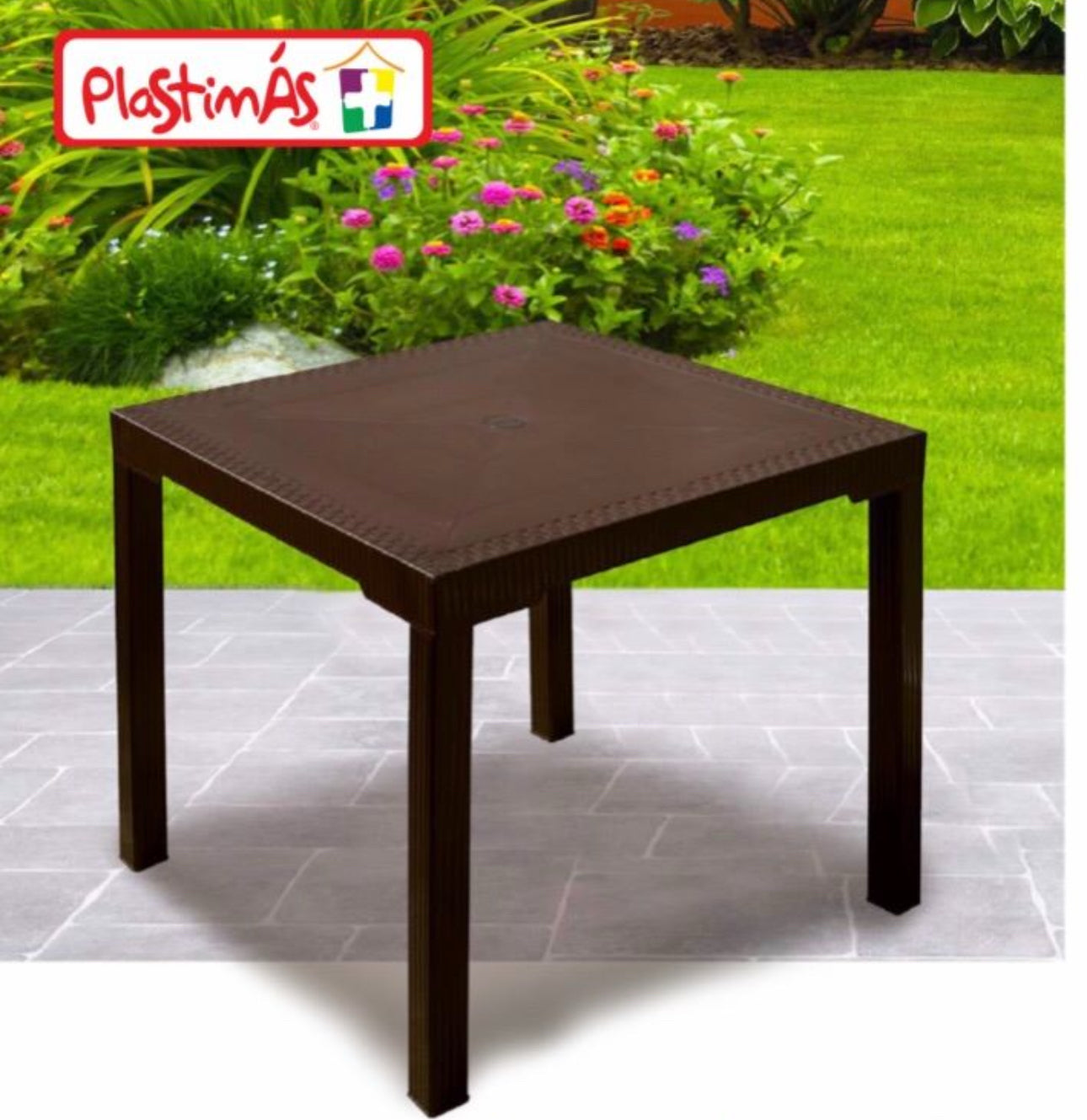 Nombre comercial: Mesa Plástica Rattan Cuadrada Café